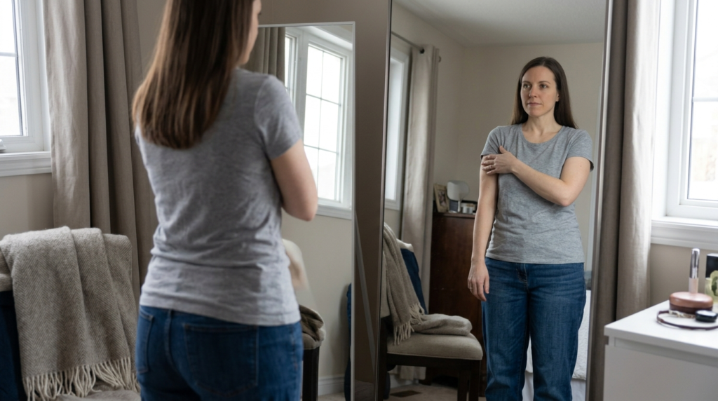 ⚠️ شيء لم يخبرني به أحد مسبقاً: ألم الكتف بعد عملية المنظار ليس وهماً، ولا علاقة له بالكتف. يحدث لأن غاز ثاني أكسيد الكربون يضغط على الحجاب الحاجز ويُشعرك بالألم في الكتف والصدر. يختفي خلال 24 إلى 48 ساعة تقريباً. لا داعي للقلق، لكن استعدّي له.